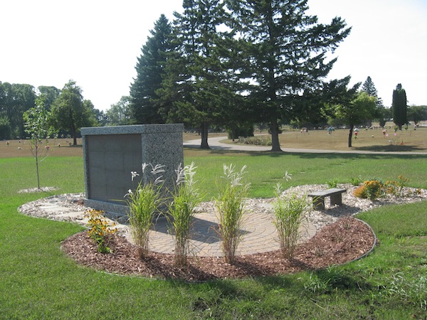 Here are a few photos of the first Columbarium at Memorial Gardens Cemetery after installation and landscaping. It is located on the east side of the Cemetery in an area set aside for the installation of additional Columbaria in the future.